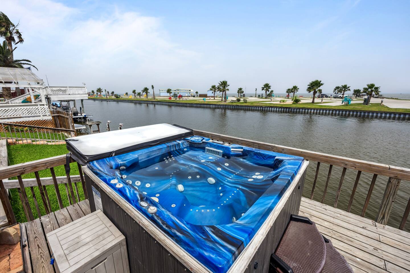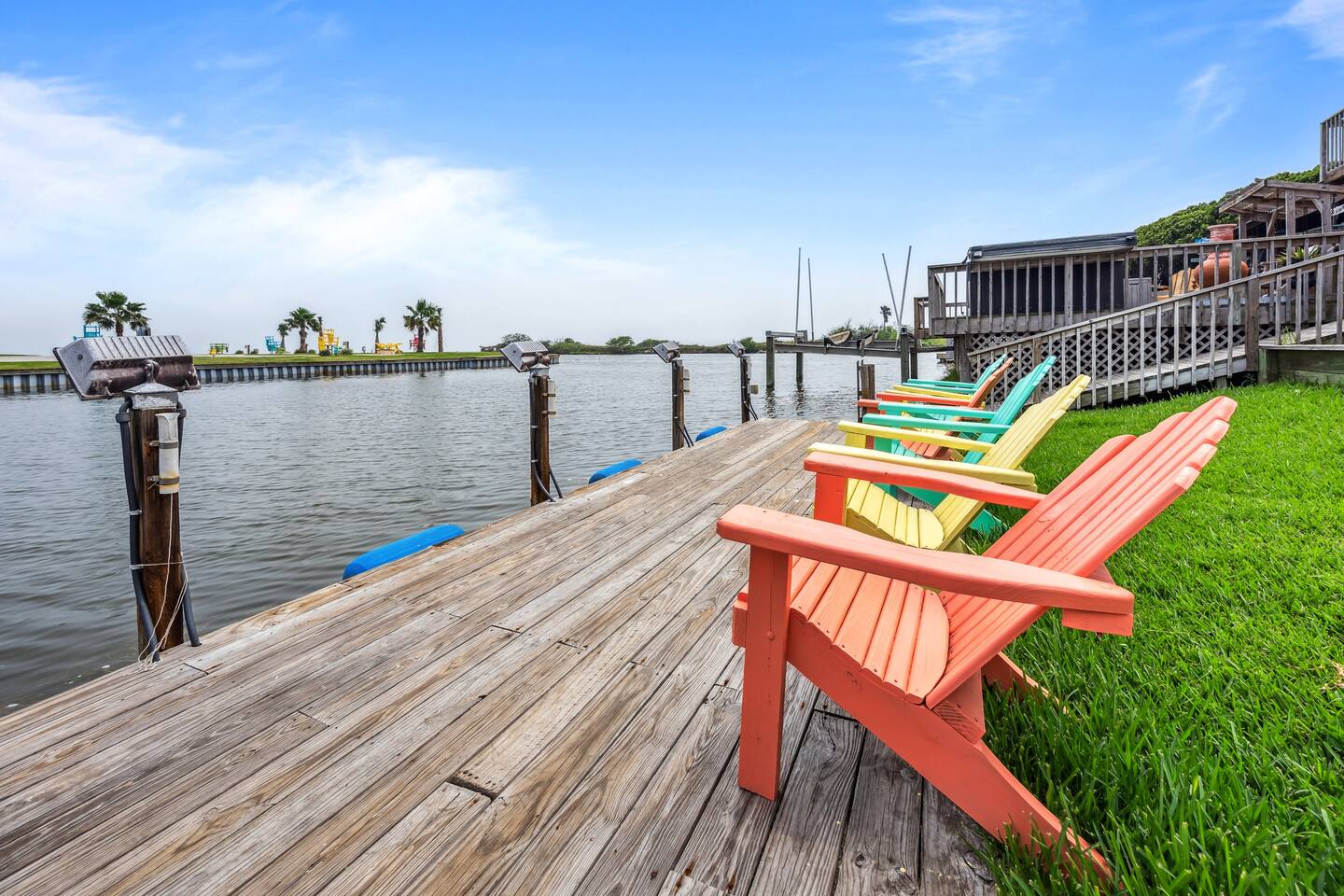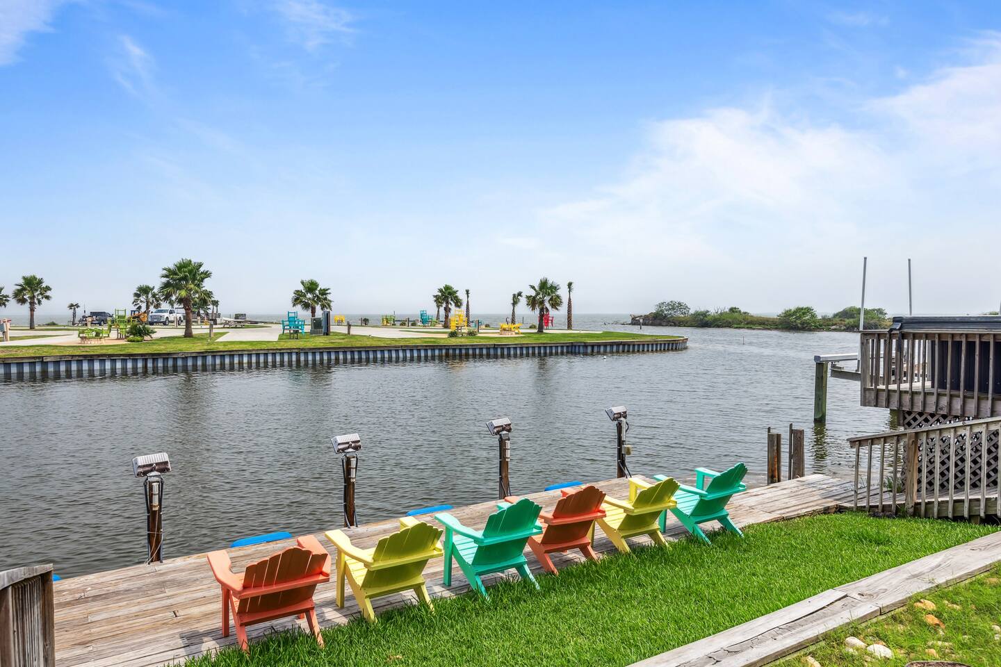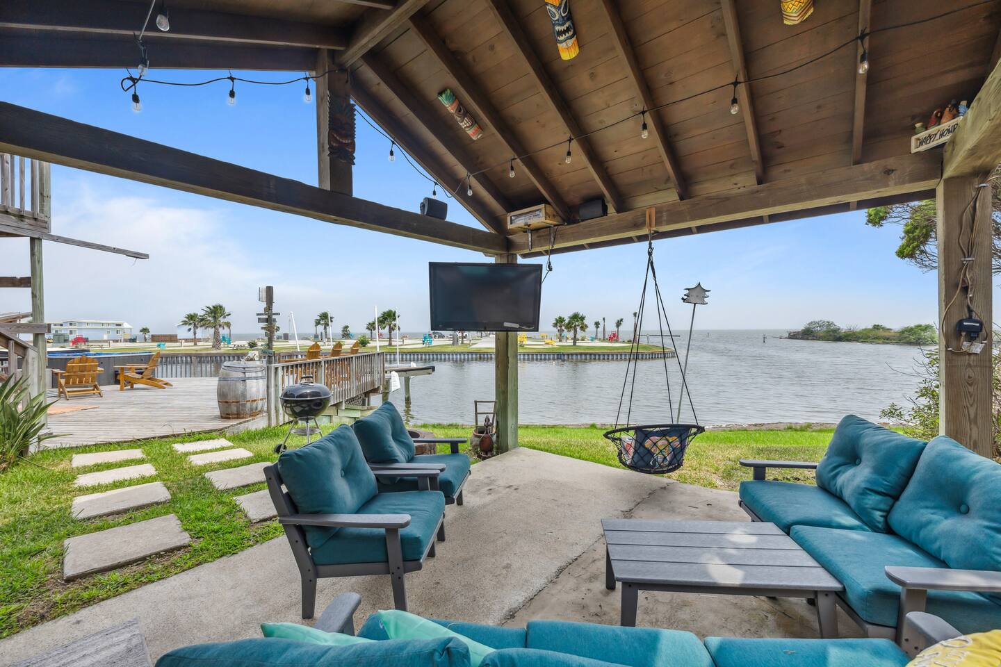 Nestled off the canal in Flour Bluff, this 3624sq.ft., updated coastal 6-bedroom, 4 full bath home is a welcoming treat. Fish in the canal from your very own private fishing dock, relax under the stars in the hot tub, or unwind in the outdoor oasis with TV and a fire pit. Watch from the backyard beautiful birds take off and land at the Held-Moran Bird Sanctuary 1/4 mile away. 15 minutes from Padre Island, this vacation rental house is ideal for up to 22 guests looking to discover Corpus Christi.