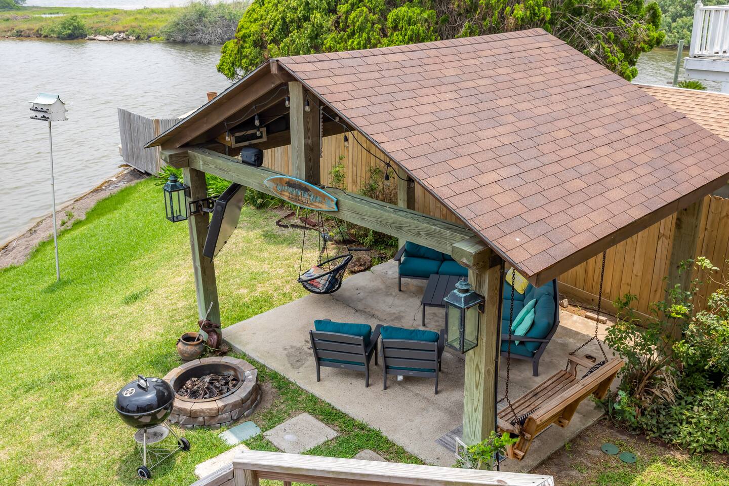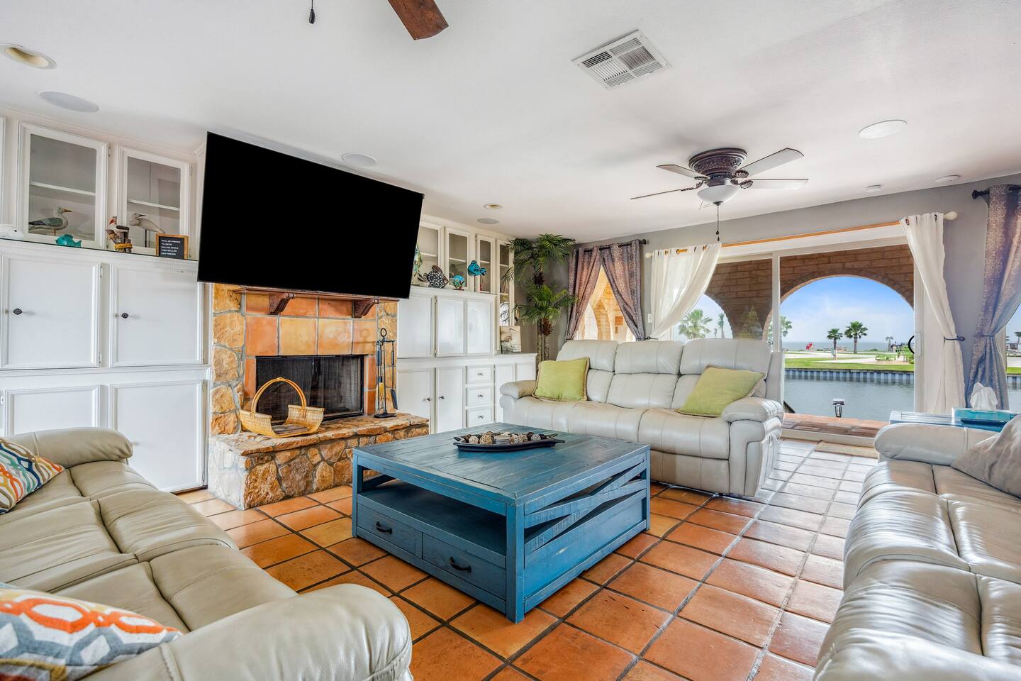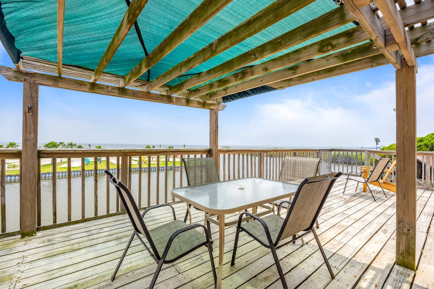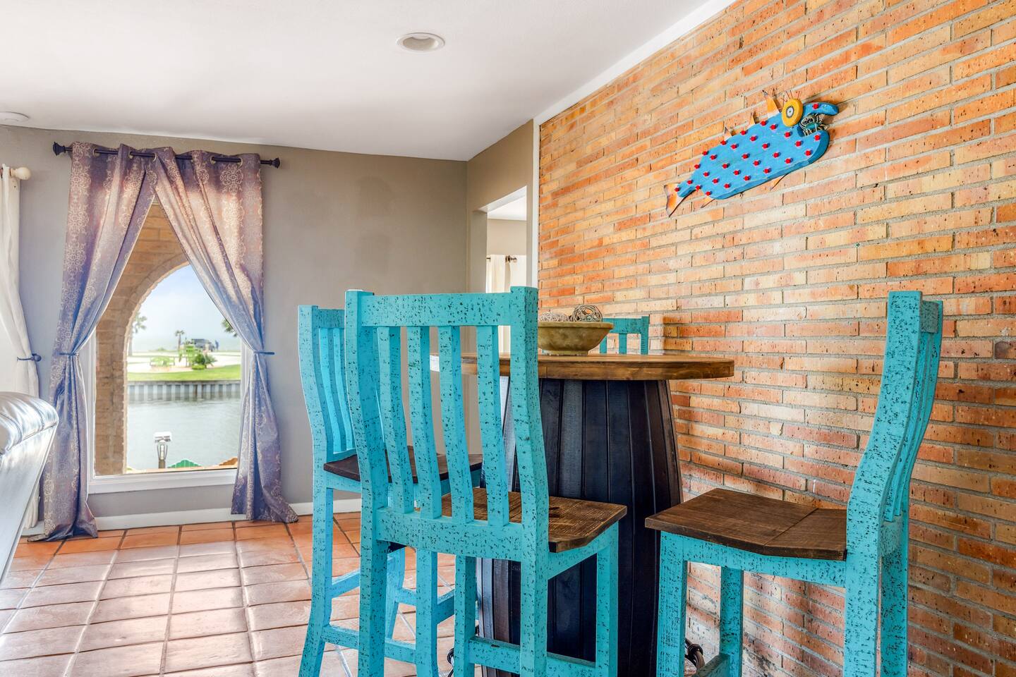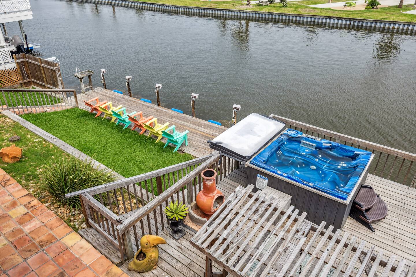 Nestled off the canal in Flour Bluff, this 3624sq.ft., updated coastal 6-bedroom, 4 full bath home is a welcoming treat. Fish in the canal from your very own private fishing dock, relax under the stars in the hot tub, or unwind in the outdoor oasis with TV and a fire pit. Watch from the backyard beautiful birds take off and land at the Held-Moran Bird Sanctuary 1/4 mile away. 15 minutes from Padre Island, this vacation rental house is ideal for up to 22 guests looking to discover Corpus Christi.