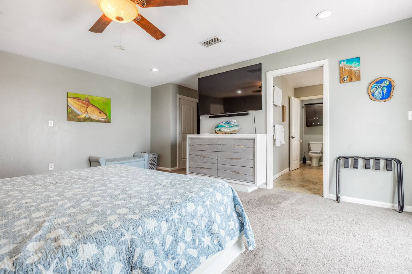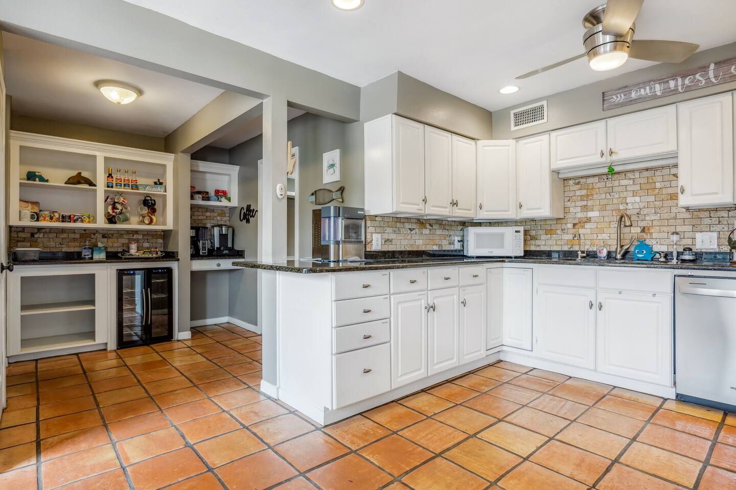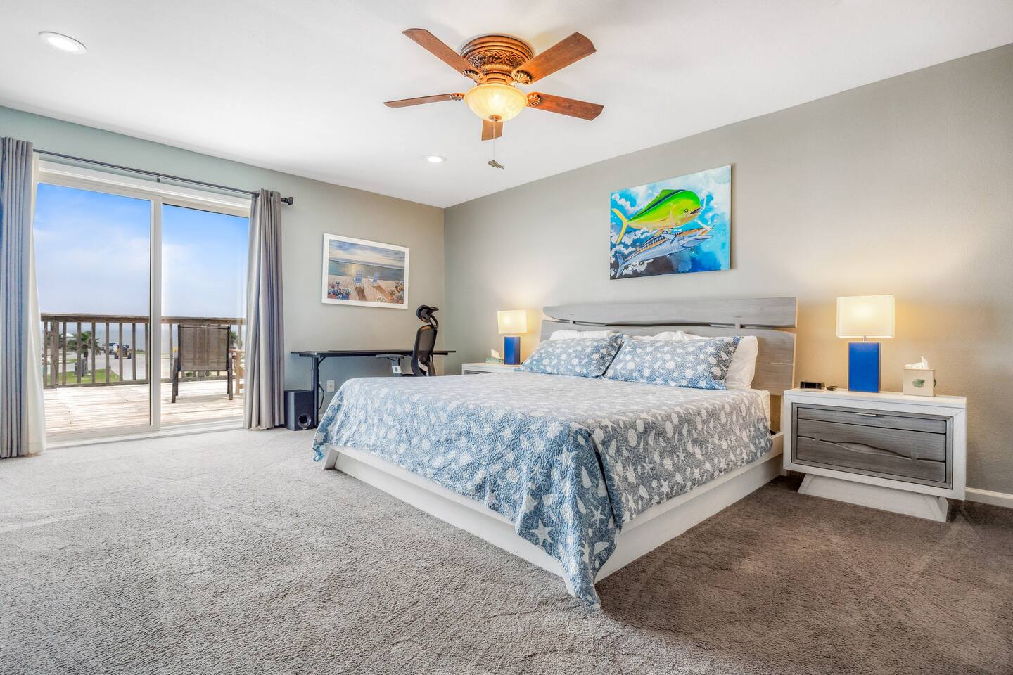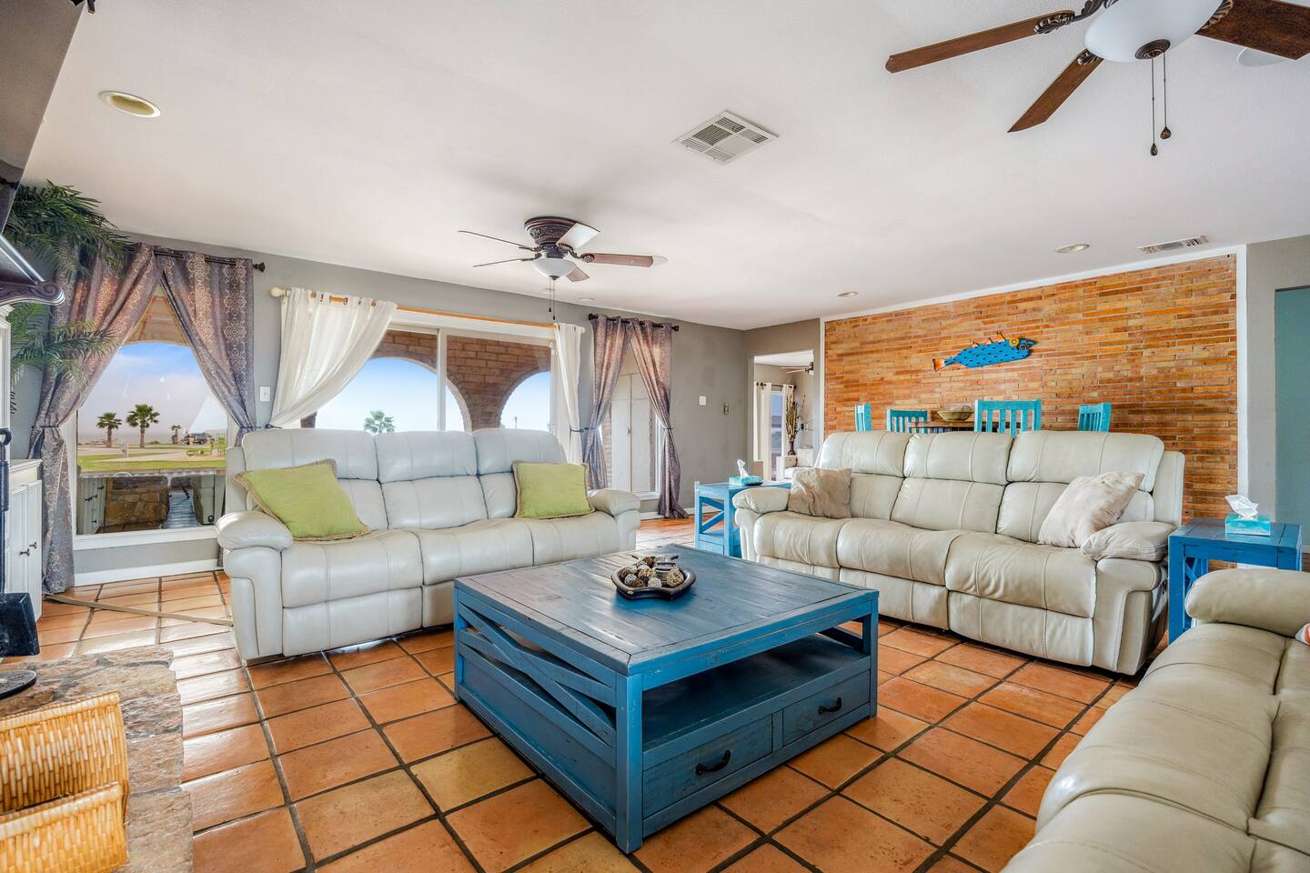 Nestled off the canal in Flour Bluff, this 3624sq.ft., updated coastal 6-bedroom, 4 full bath home is a welcoming treat. Fish in the canal from your very own private fishing dock, relax under the stars in the hot tub, or unwind in the outdoor oasis with TV and a fire pit. Watch from the backyard beautiful birds take off and land at the Held-Moran Bird Sanctuary 1/4 mile away. 15 minutes from Padre Island, this vacation rental house is ideal for up to 22 guests looking to discover Corpus Christi.
